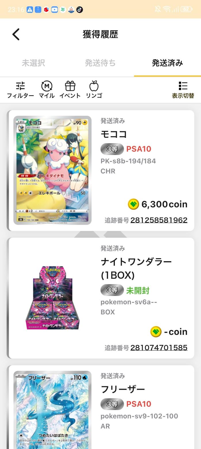 PSAのランダムカードが一枚だけ当たりましたがポイント還元して全て消費してしまいました。