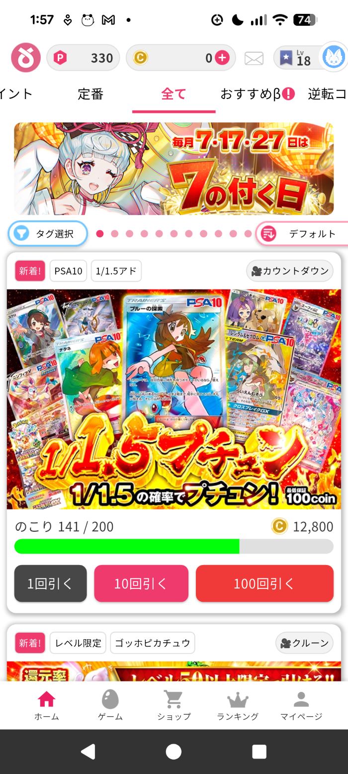 コインによって引けるオリパも変わってくるので、通常のコイン1種類でいいと感じました。